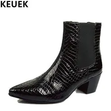 All Information About Pointed toe genuine leather Men Fashion Boots Elevator shoes Spring/Autumn British style Male Ankle boots High heels 1/4
